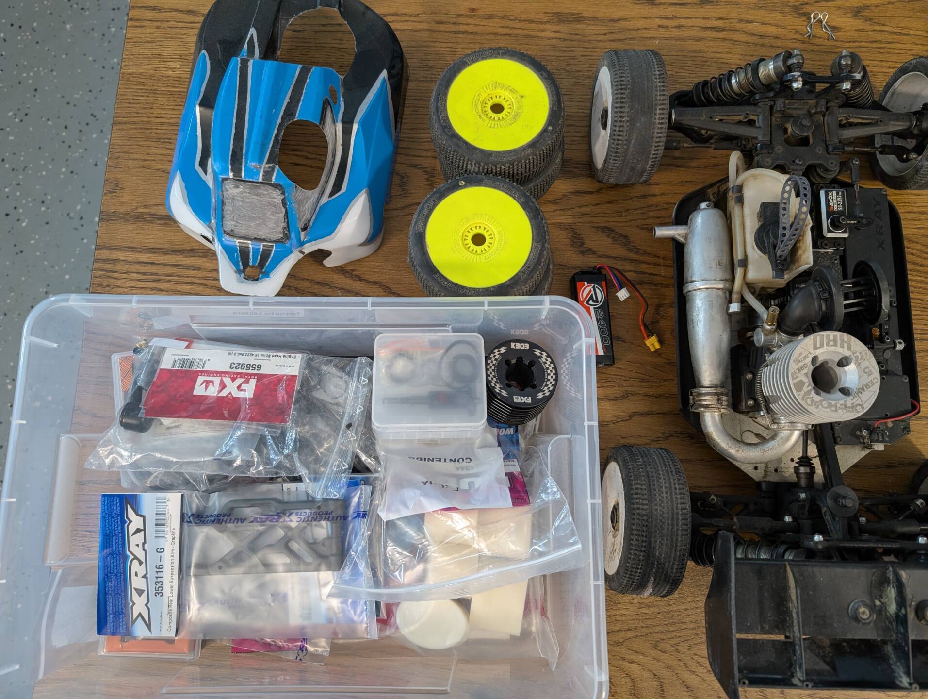 Pridavam k tomu balik nahradnych dielov Xray, Fx a Huddy taktiez Huddy start box.